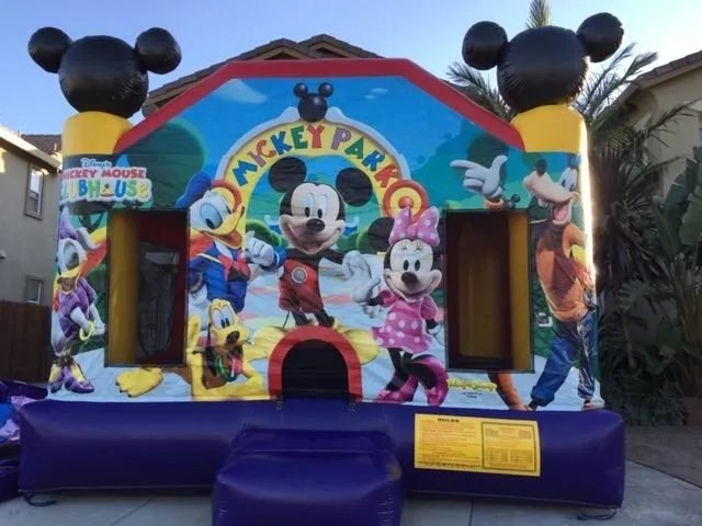 Mickey Mouse and friends jump house has a huge bounce area for 10-12 kids.