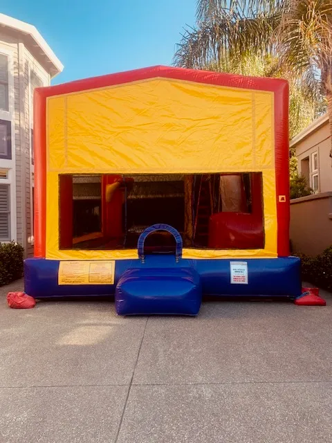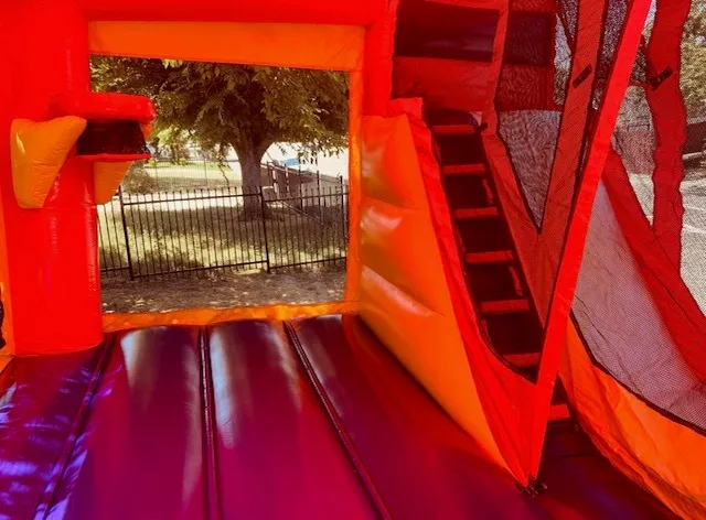 This fun house has a massive inside platform with hoops and a inside slide..